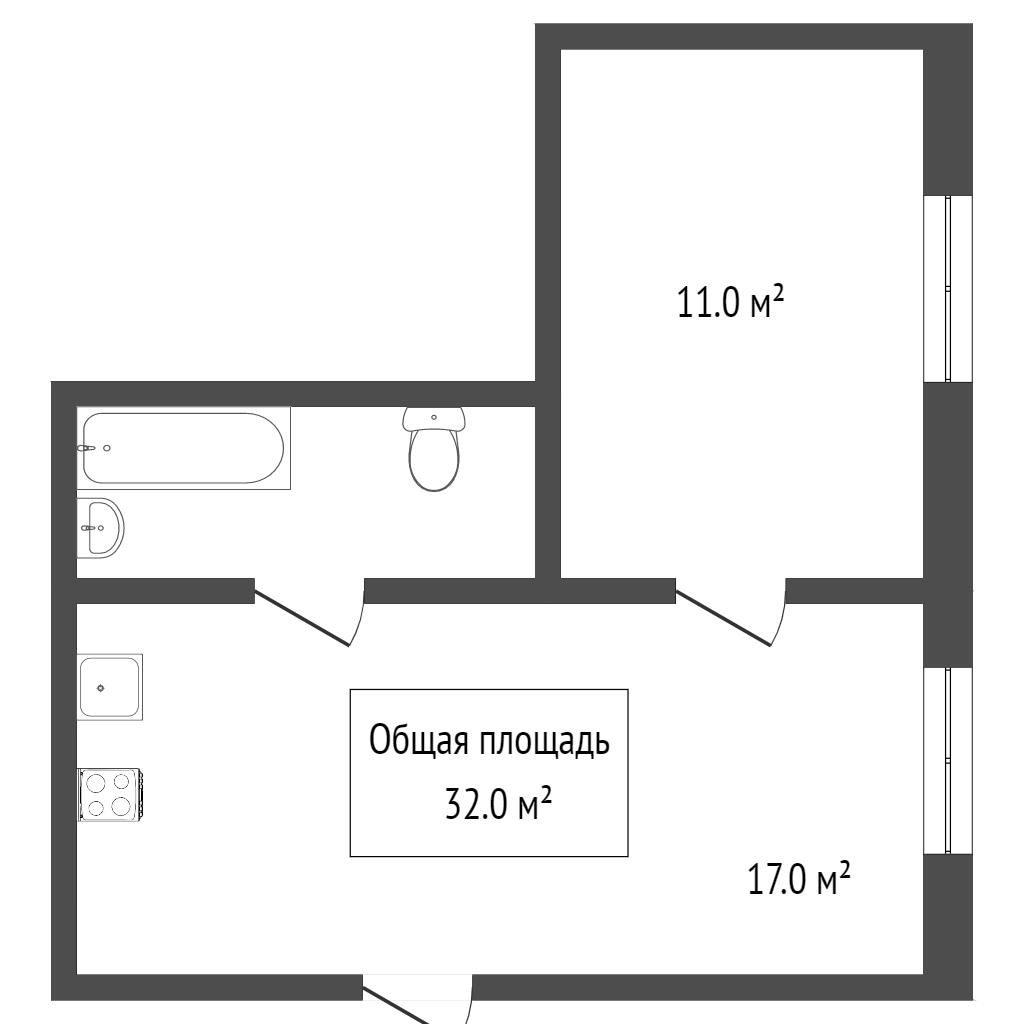 - Общая площадь: 32.2 м2