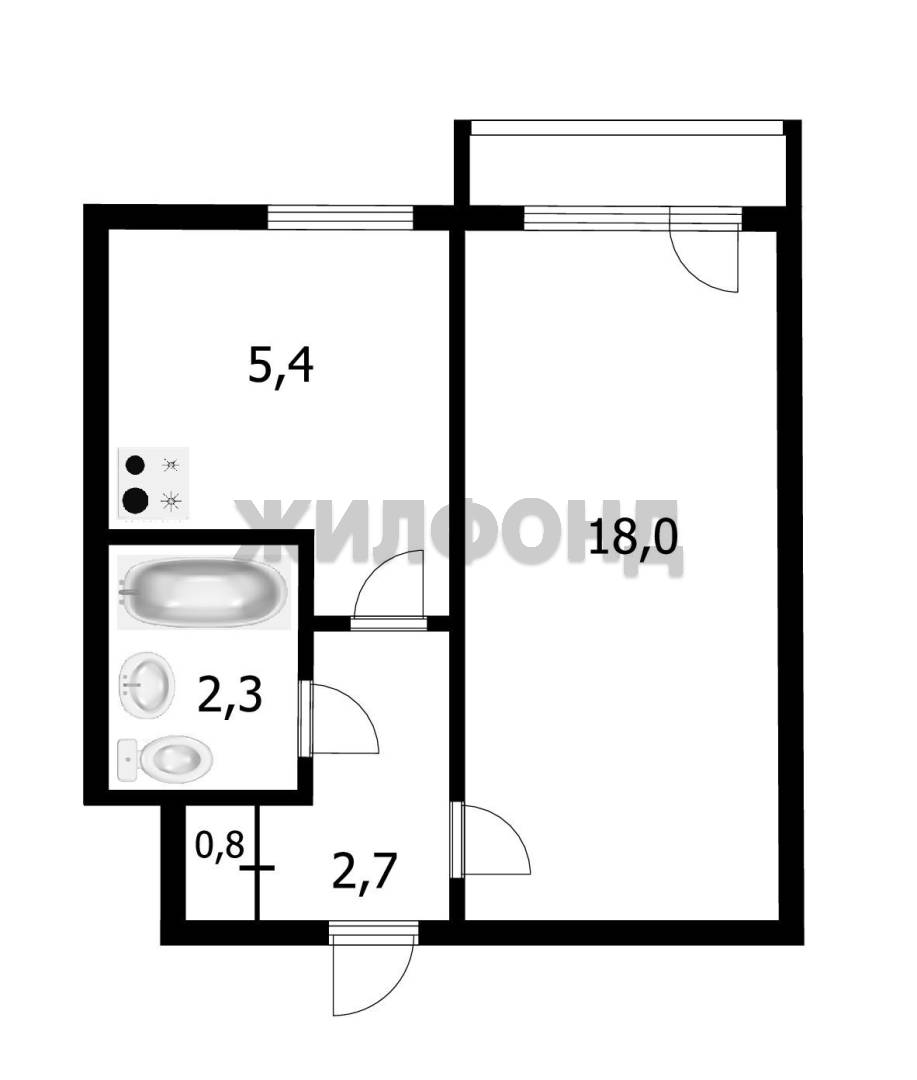 - Общая площадь: 29.8 м2