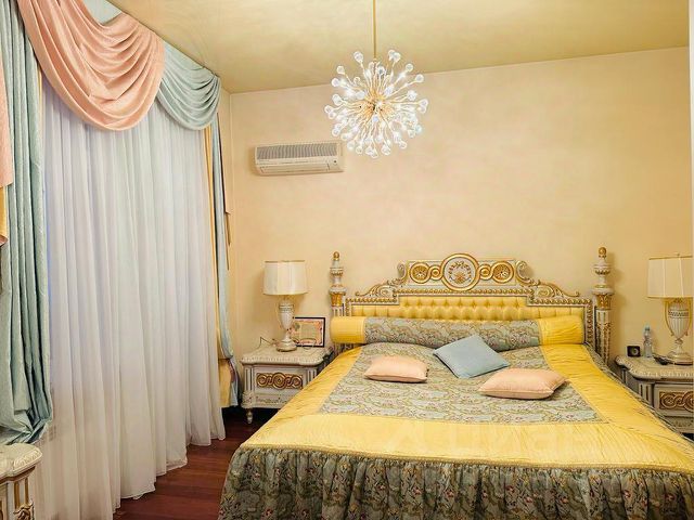 Двухуровневая квартира из пяти комнат на последних этажах в центре города. Дом состоит из 22 квартир. В квартире 2 обогреваемые утеплённые лоджии + 2 не обогреваемые. Санузел на каждом этаже . Есть сауна, гардеробная комната, оружейная комната , прачечная комната, камин. В наличии 2 парковочных места.