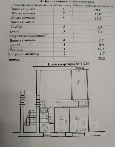 - Общая площадь 58.8 м2