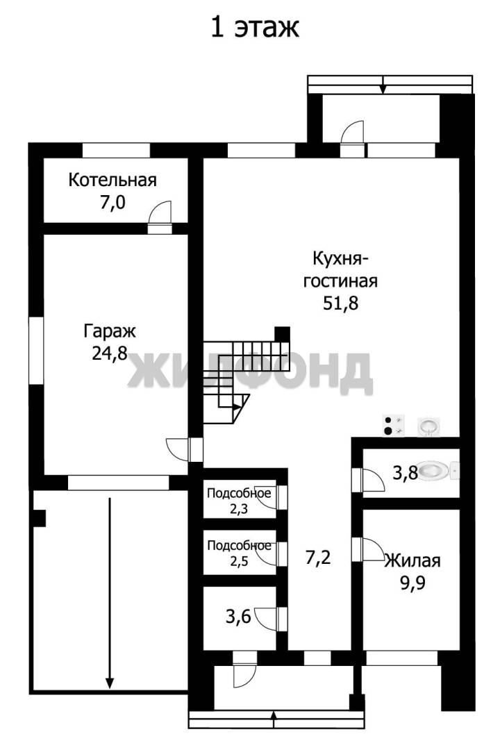 - Площадь кухни: 51.8 м2