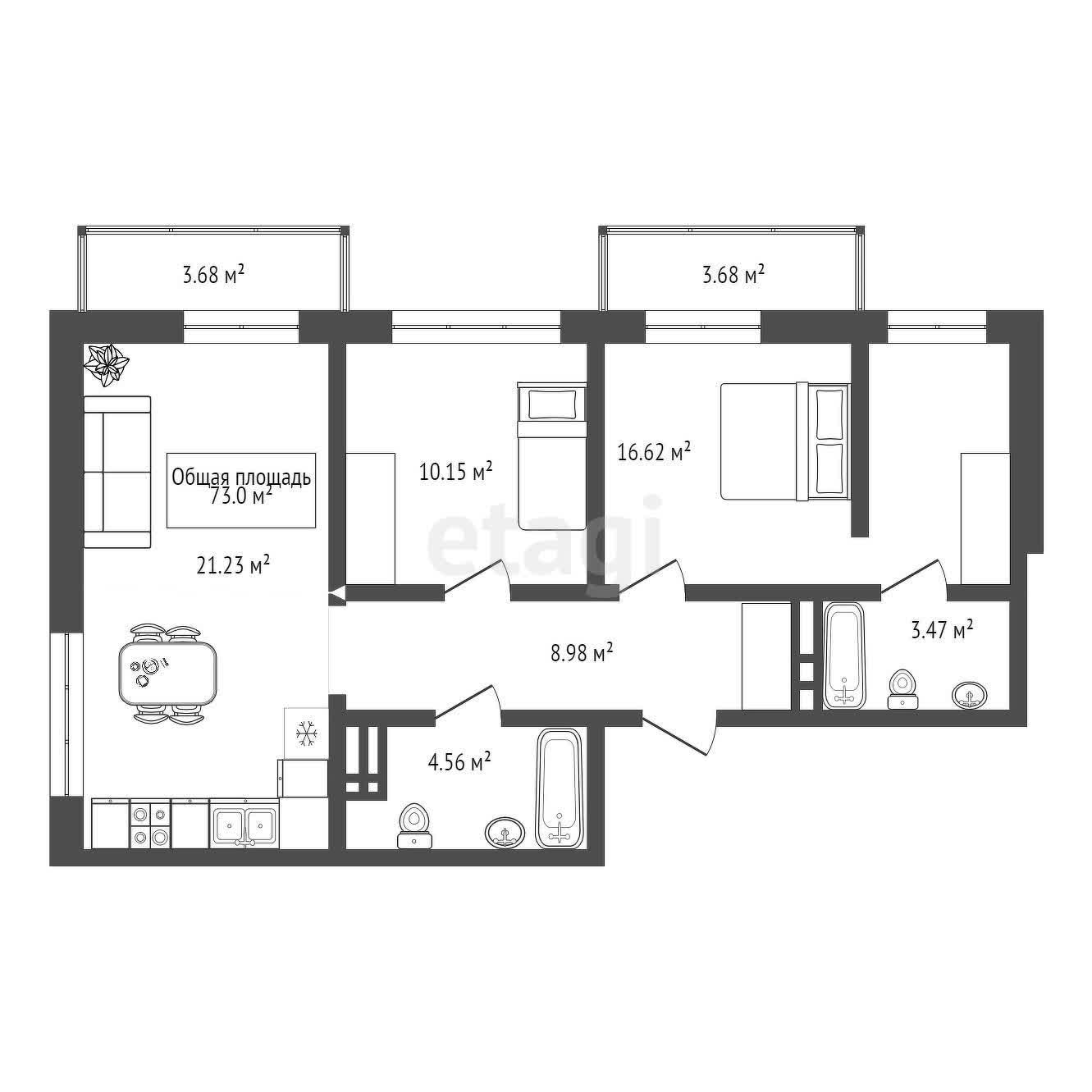 - Общая площадь: 73 м2