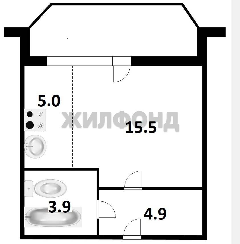 - Жилая площадь 15.5 м2