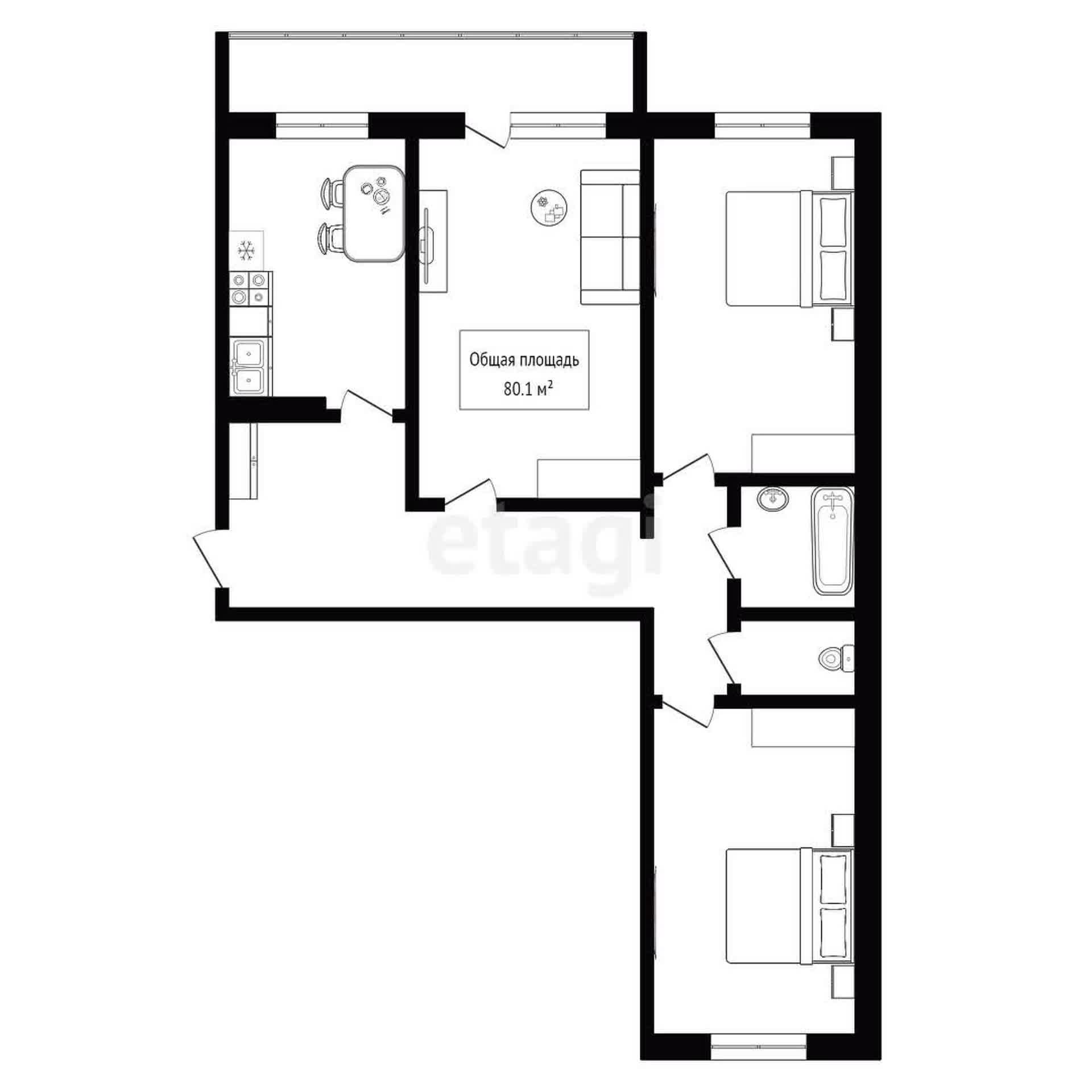 - Общая площадь: 80.1 м2