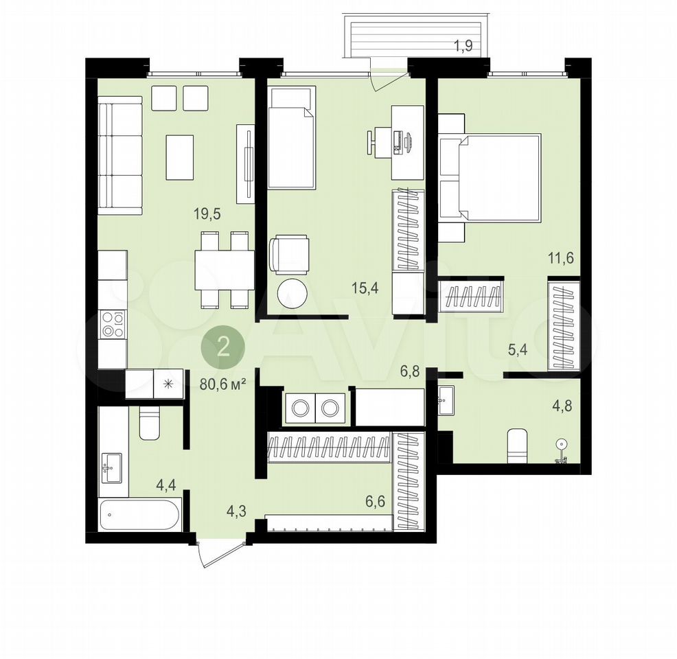 - Общая площадь 80.6 м2