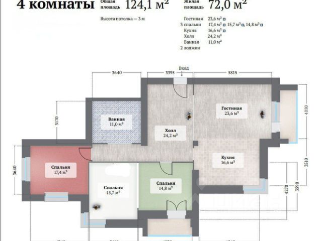 - Общая площадь: 124 м2