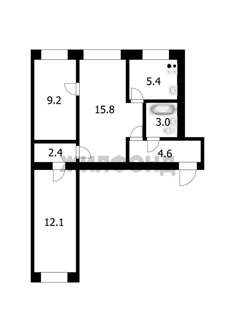 - Площадь кухни: 5.4 м2