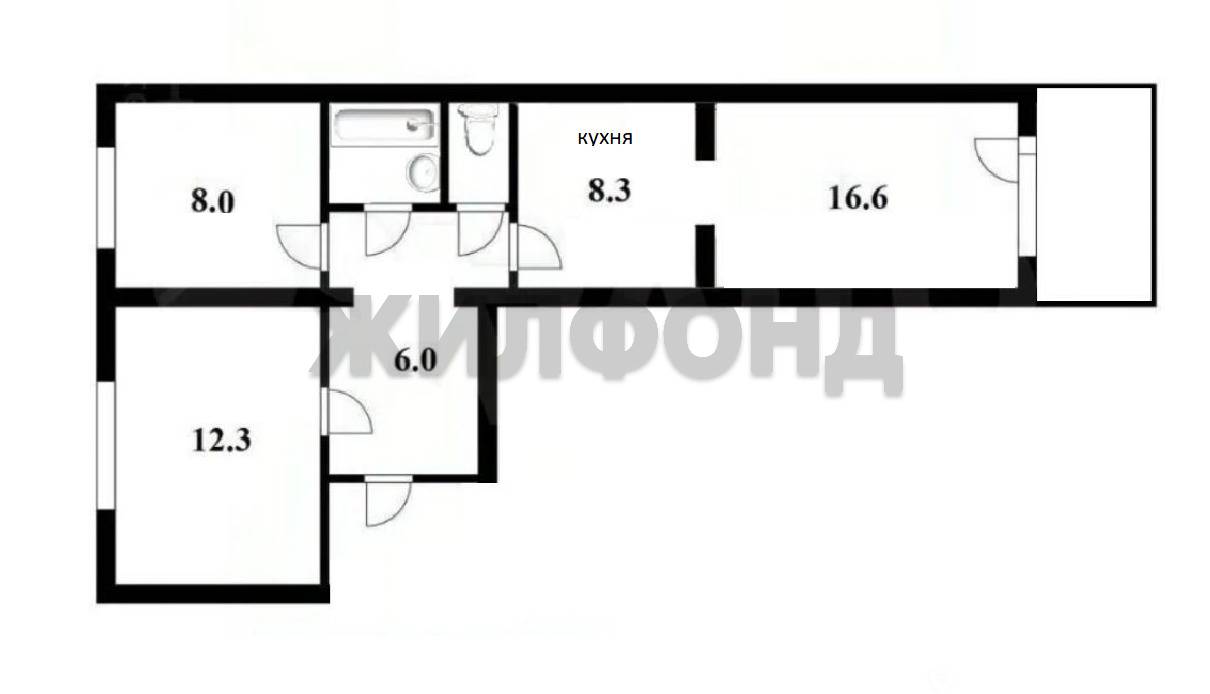 - Общая площадь: 58.3 м2