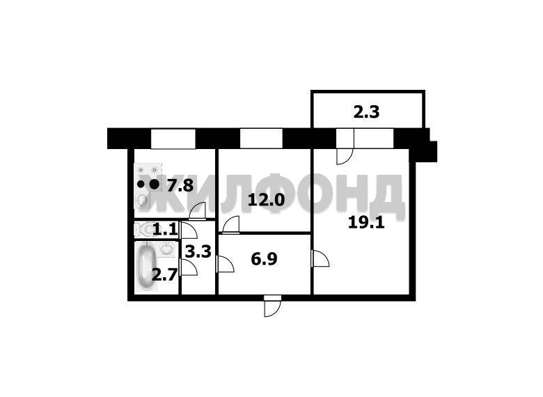 - Общая площадь: 52.9 м2