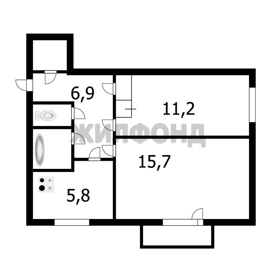 - Общая площадь: 43.9 м2