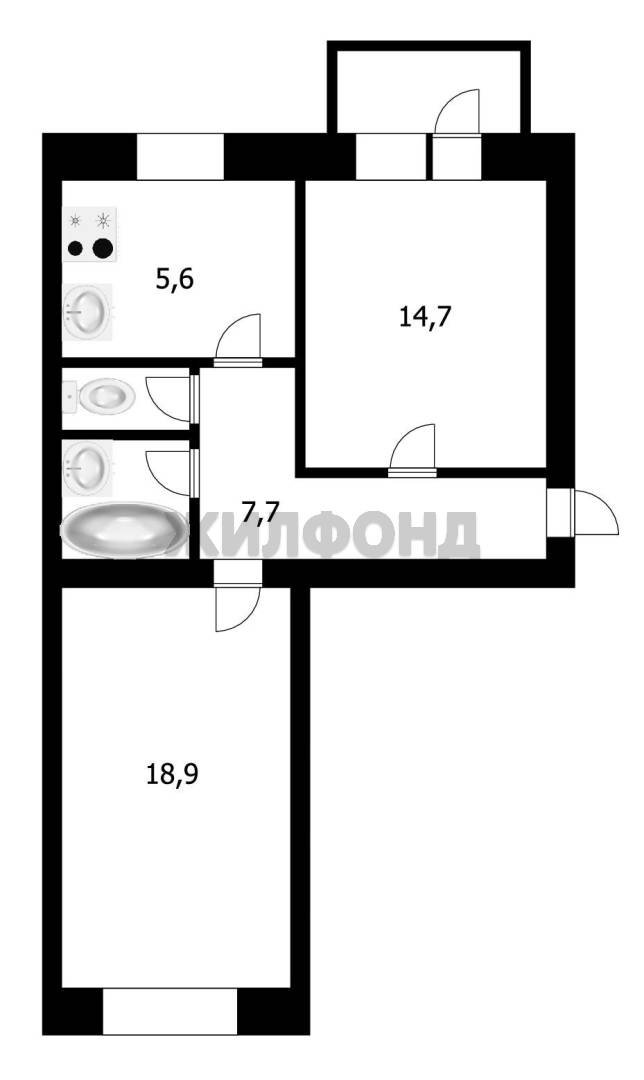 - Общая площадь: 55.5 м2