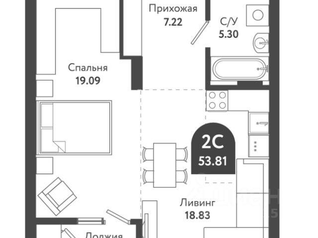 - Общая площадь: 53.7 м2