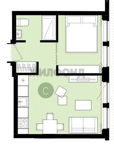 - Жилая площадь 27.2 м2