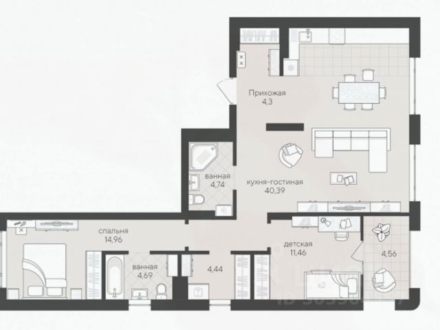 - Общая площадь: 88.8 м2