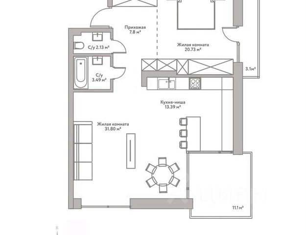 - Общая площадь 85 м2