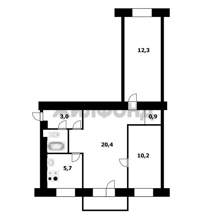 - Площадь кухни: 5.7 м2