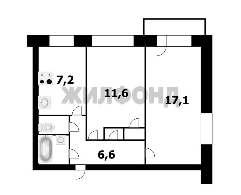 - Площадь кухни: 7.2 м2