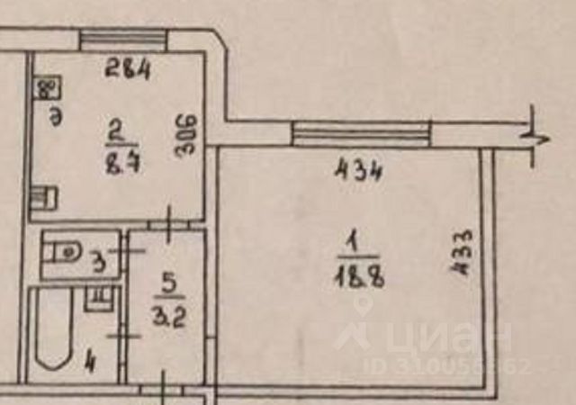- Общая площадь: 34.5 м2
