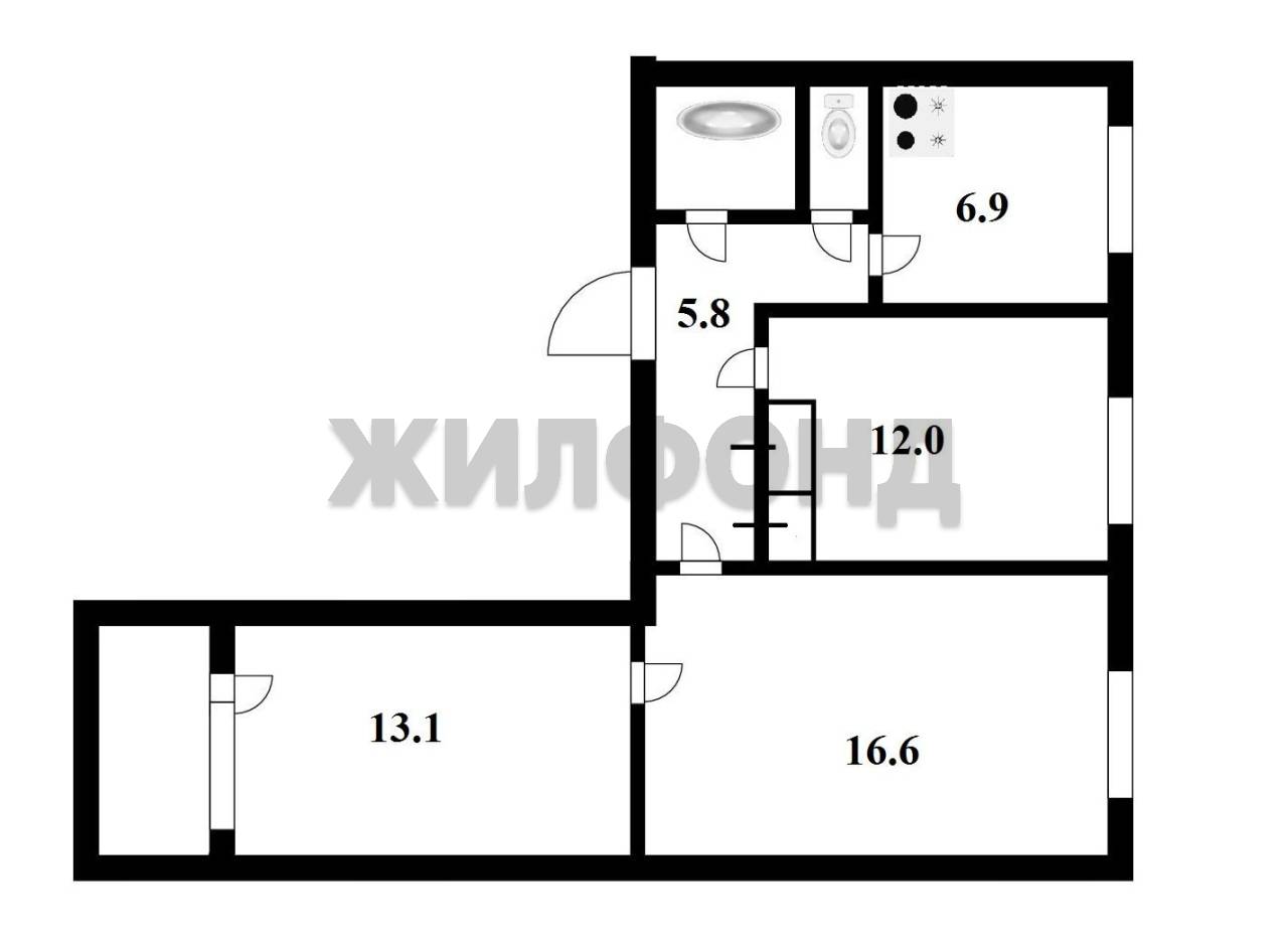 - Общая площадь: 59 м2