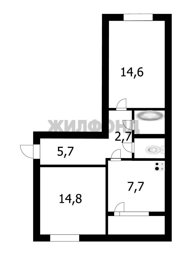 - Площадь кухни: 7.7 м2