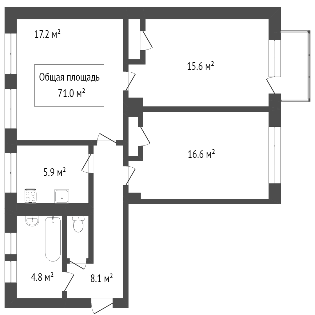 - Общая площадь: 70 м2