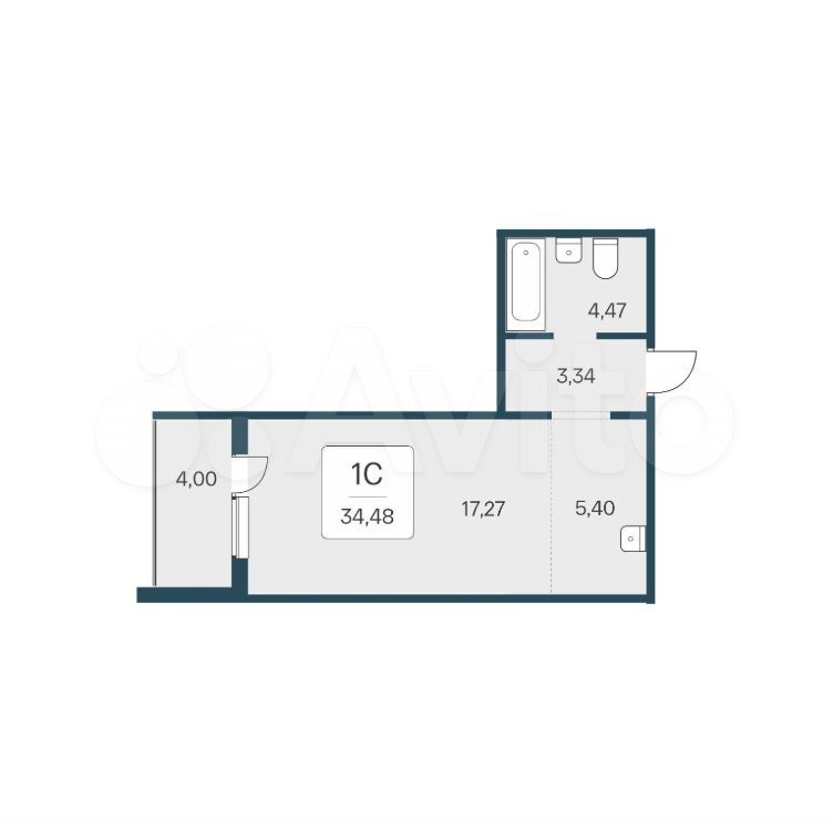 - Общая площадь 34.5 м2