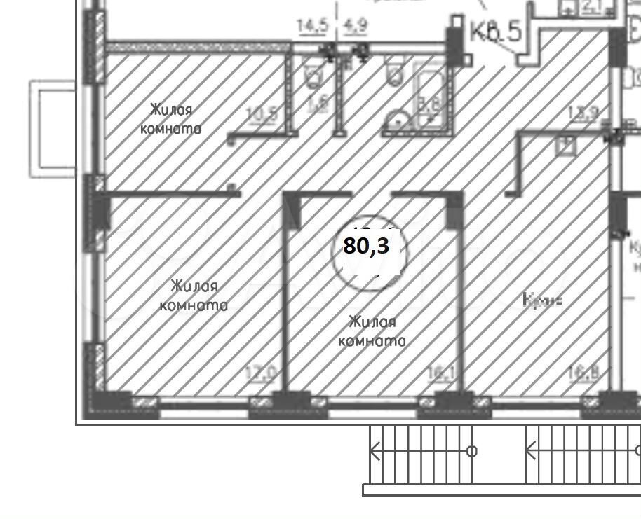 - Общая площадь 80.3 м2