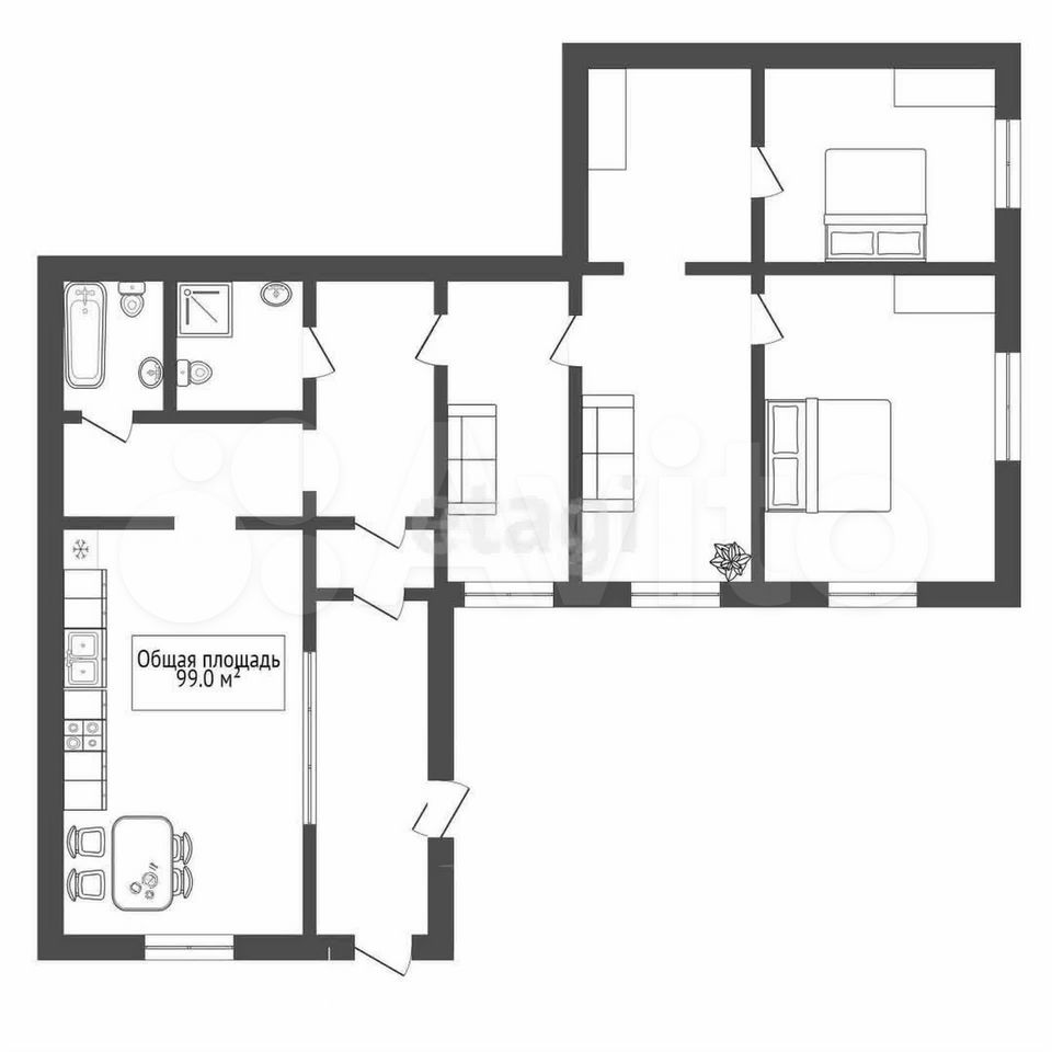 - Общая площадь 99 м2