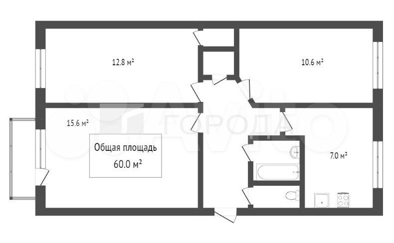 - Общая площадь: 62 м2