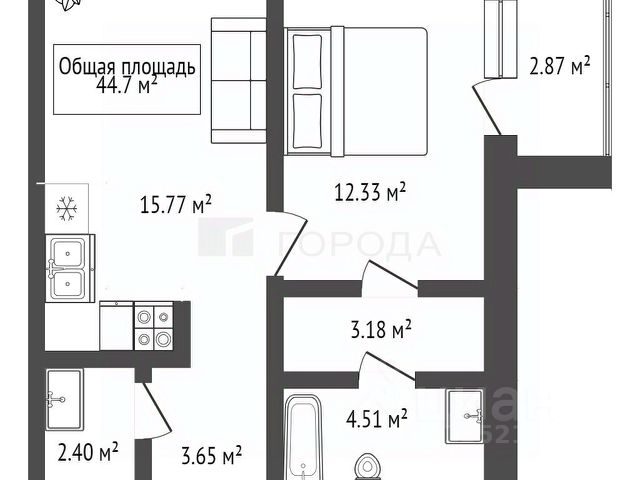 - Общая площадь: 44.7 м2