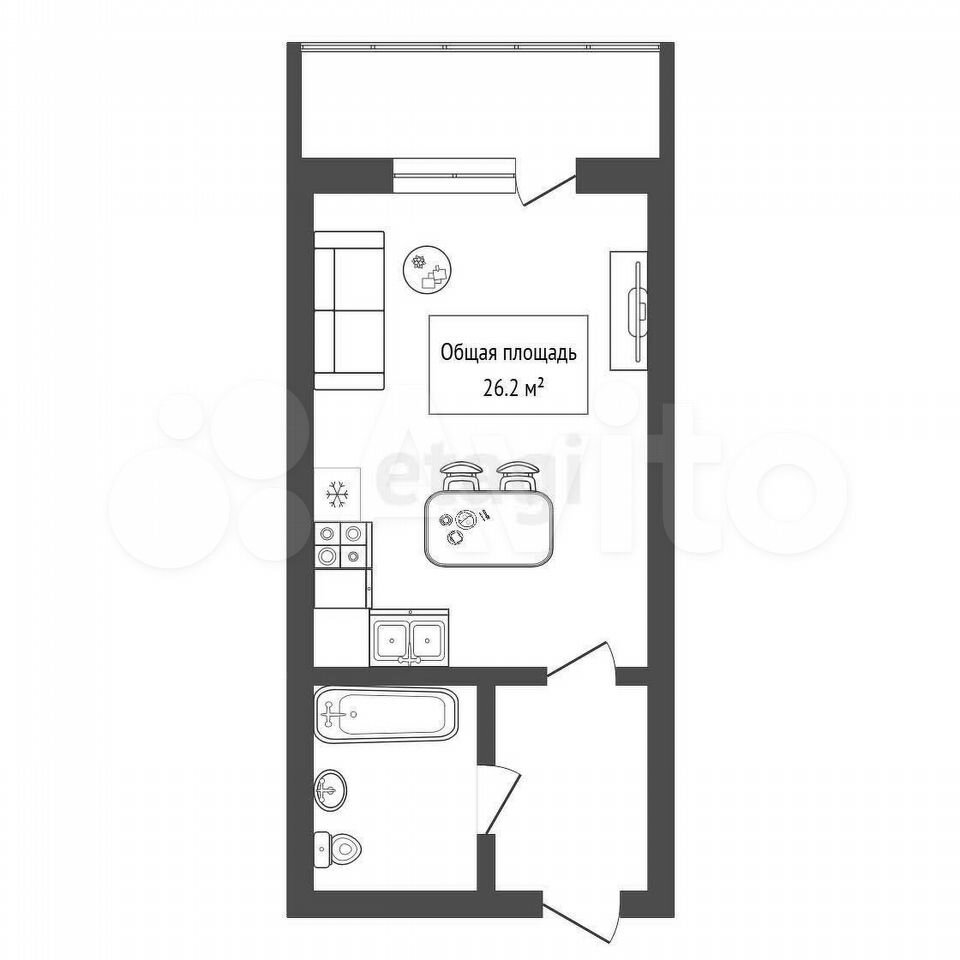 - Общая площадь: 26.2 м2