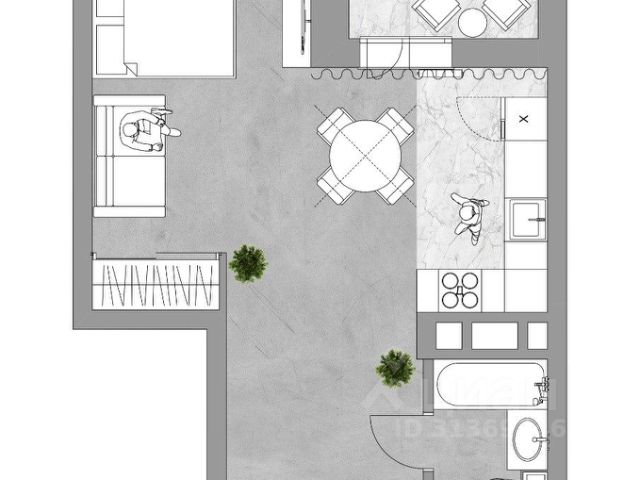 - Общая площадь 37.9 м2