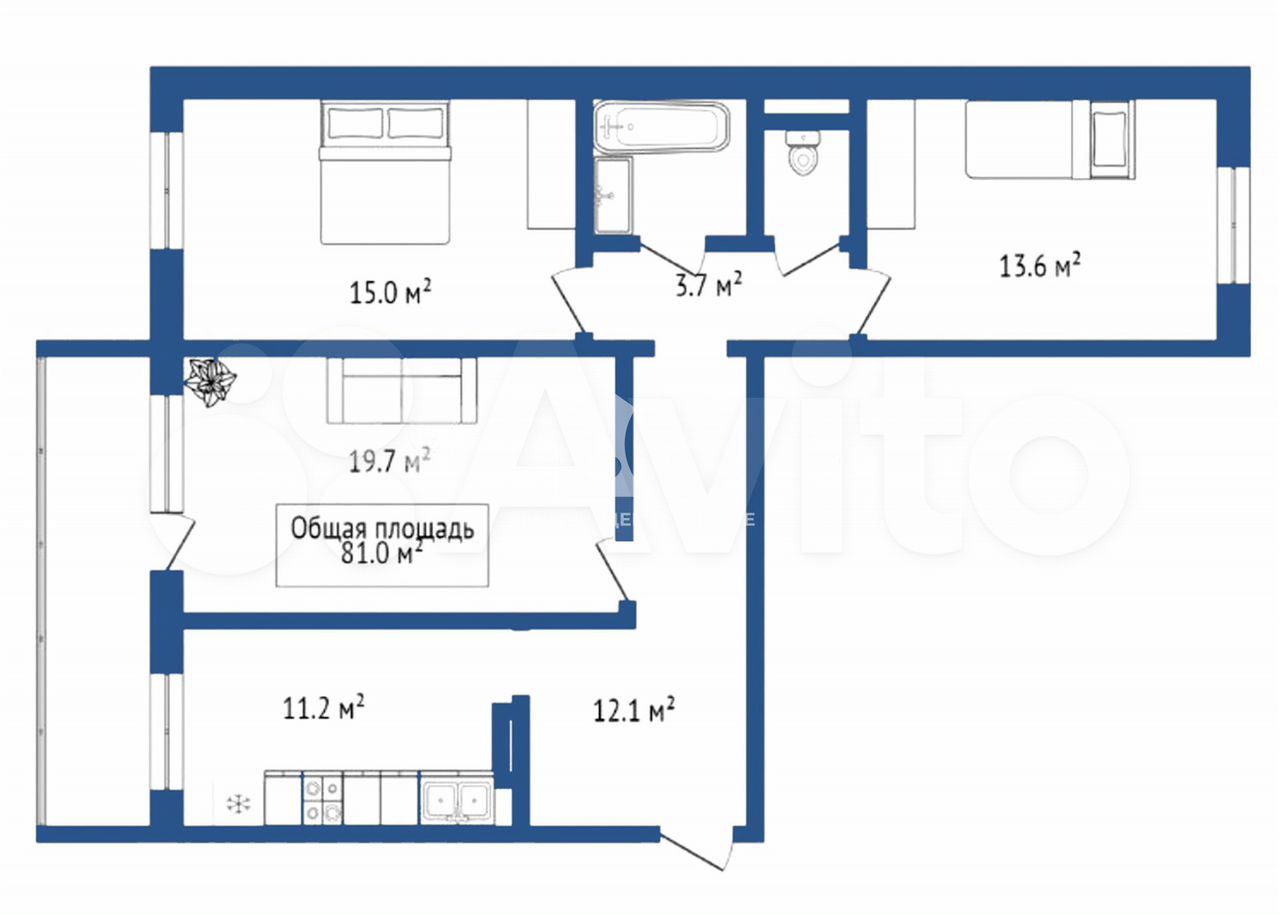 - Общая площадь: 81 м2