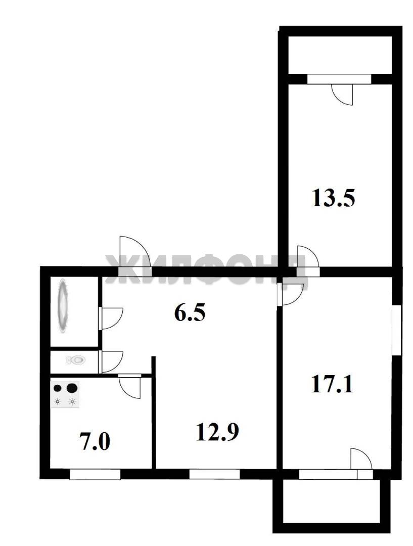 - Жилая площадь 43.5 м2
