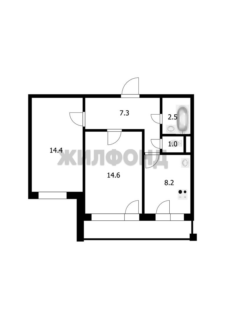 - Общая площадь: 48 м2