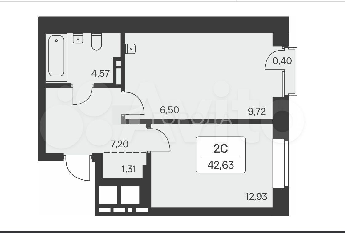 - Общая площадь: 42 м2