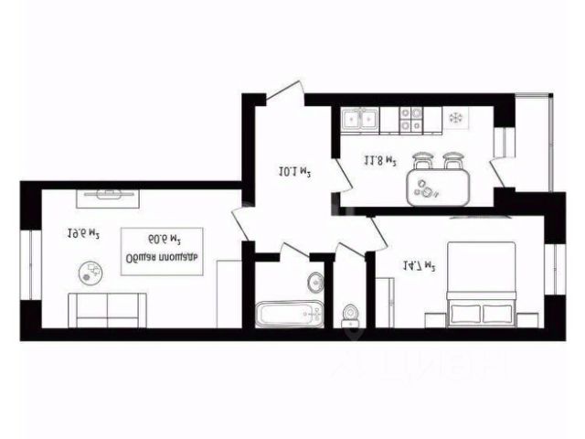 - Общая площадь: 60.7 м2