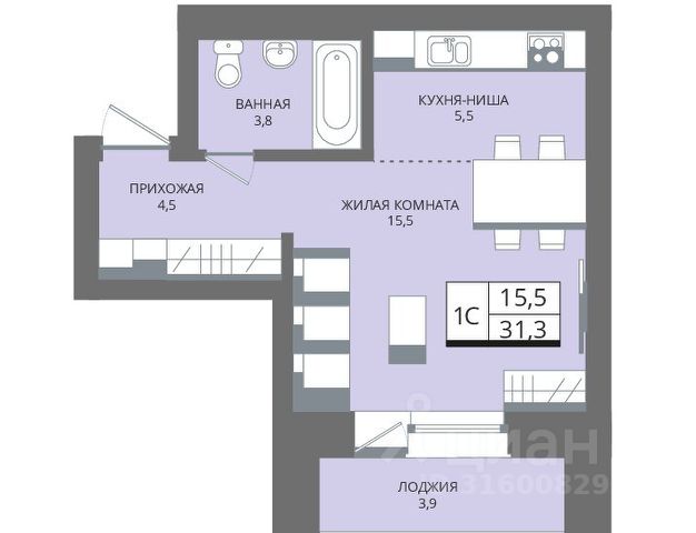 - Общая площадь: 31.3 м2