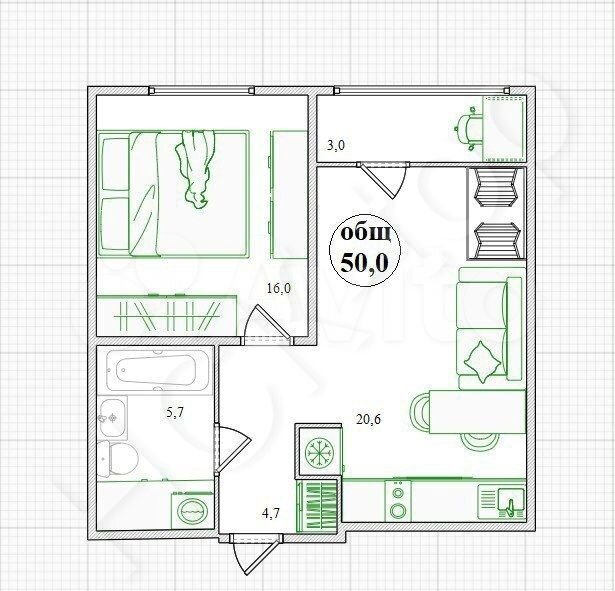 - Общая площадь: 50 м2