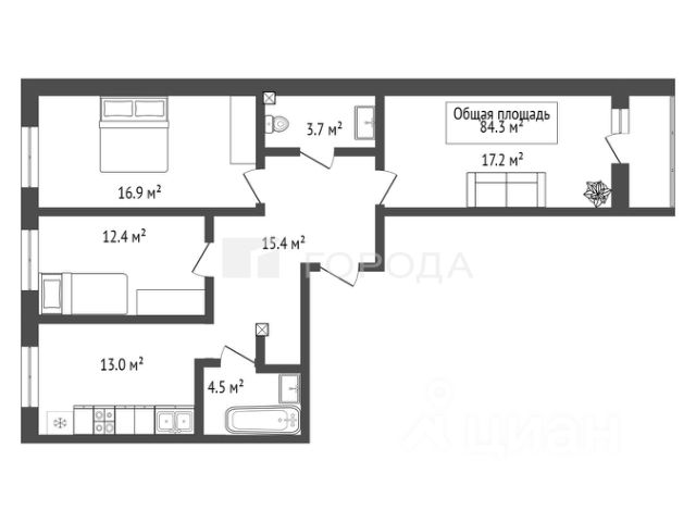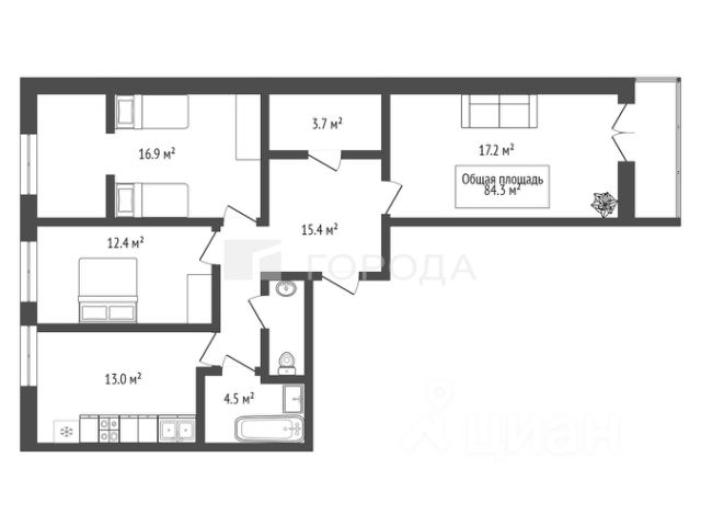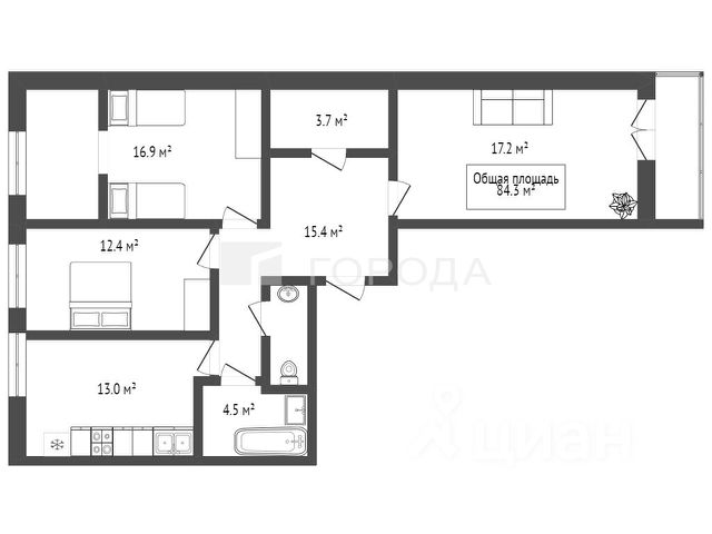 - Общая площадь 84.3 м2
