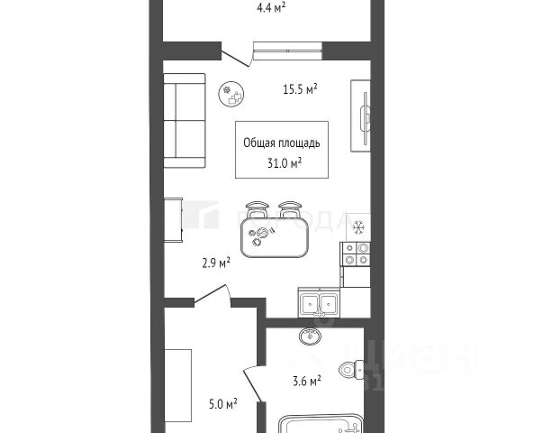 - Общая площадь: 31 м2