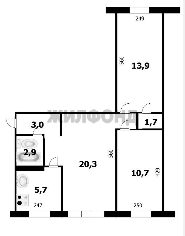 - Площадь кухни: 5.7 м2