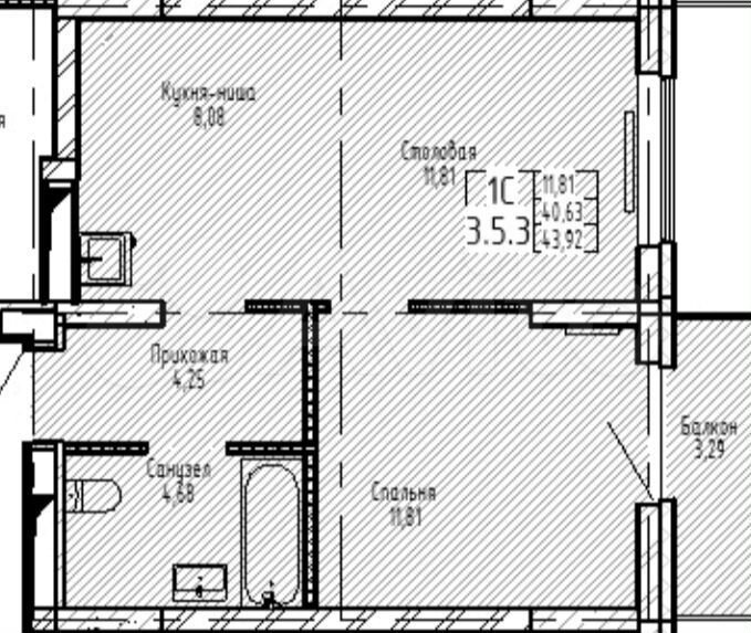 - Общая площадь: 43.9 м2