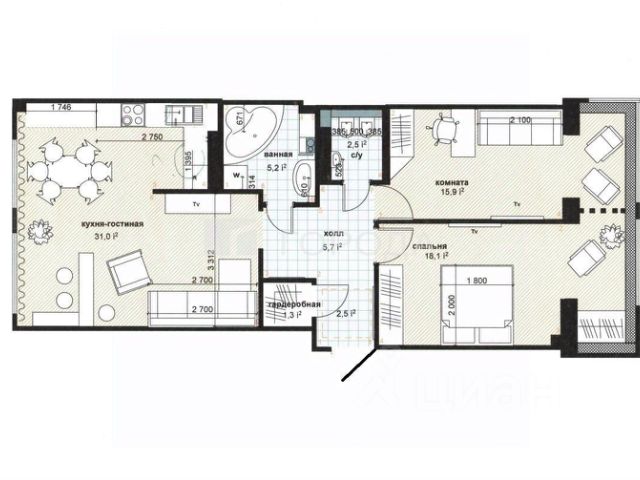 - Общая площадь: 83 м2