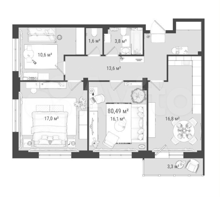- Общая площадь: 80.4 м2