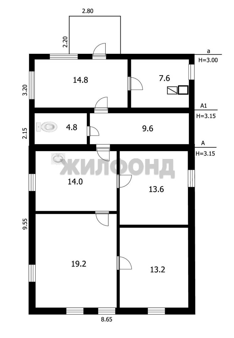 - Общая площадь: 74.4 м2