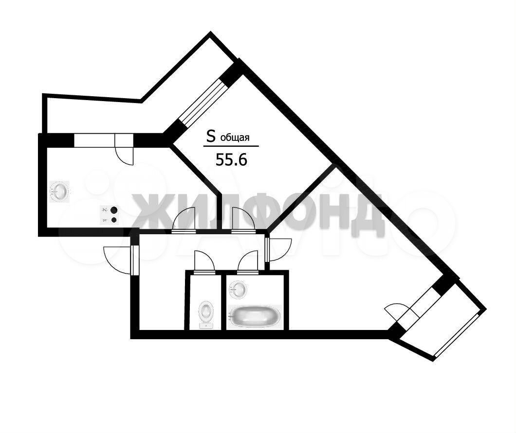 - Общая площадь: 55.6 м2