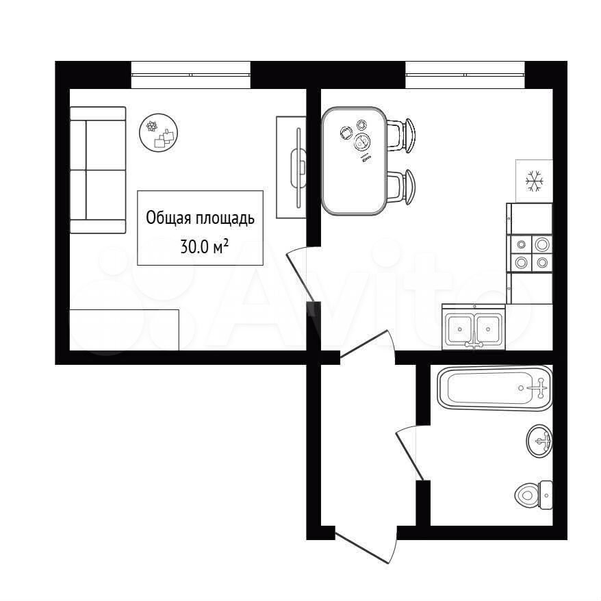 - Общая площадь: 30 м2