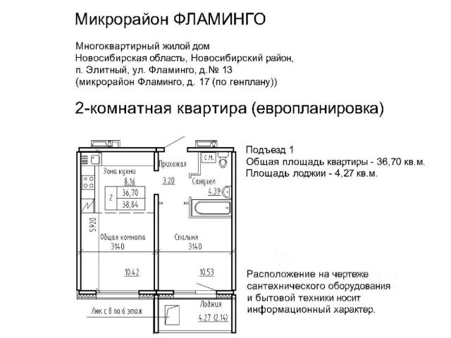 - Общая площадь: 38.8 м2
