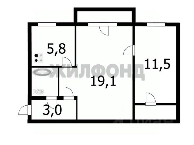 - Общая площадь 44.5 м2